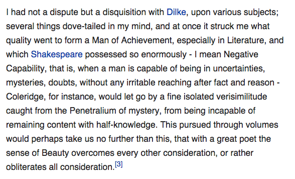 Keats on the great power of negative capability: http://en.wikipedia.org/wiki/Negative_capability … 1/2pic.twitter.com/UWc3NN8YcG
