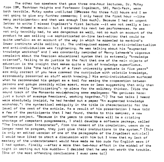 Djikstra on Engelbart. (I'm unsympathetic to EWD on many things, but he's often wrong in stimulating ways.)pic.twitter.com/EA47qcxSr2