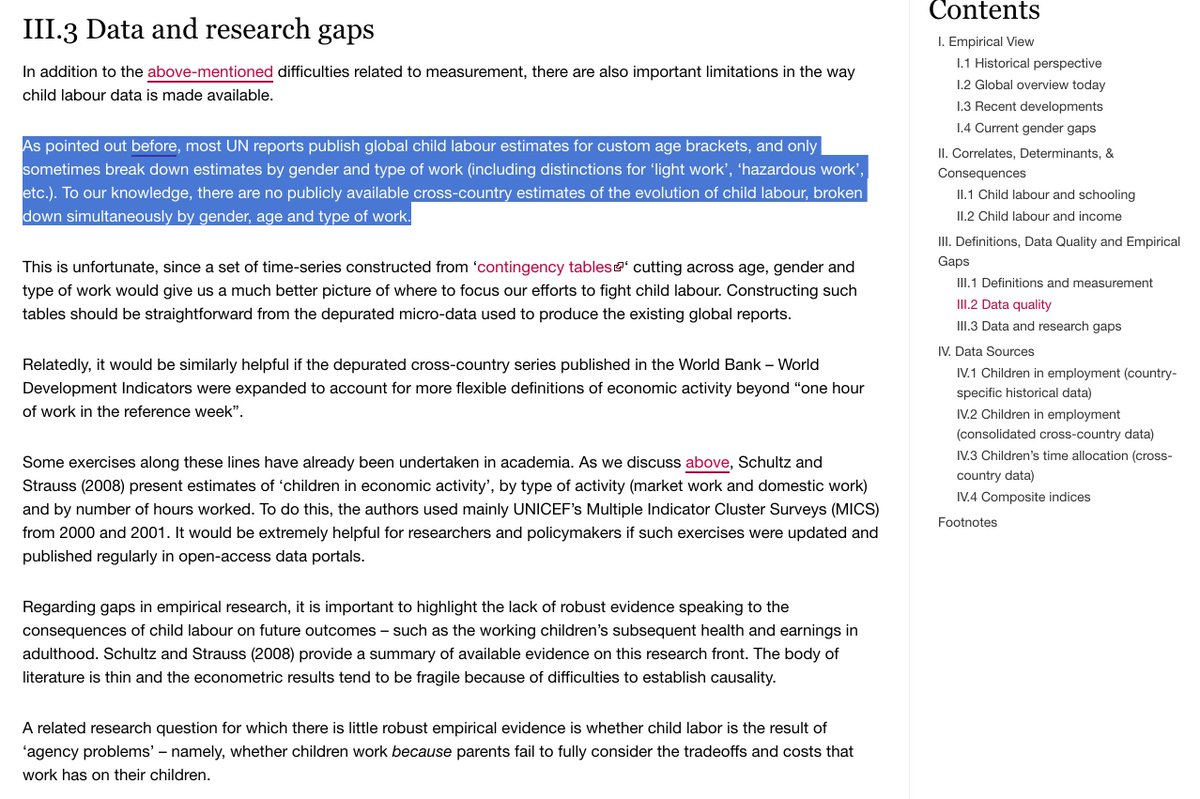 On Our World in Data we now have a section on what we don’t know. Here is this section for child labor: https://ourworldindata.org/child-labor/#data-and-research-gaps …pic.twitter.com/JYNgjuDBNG