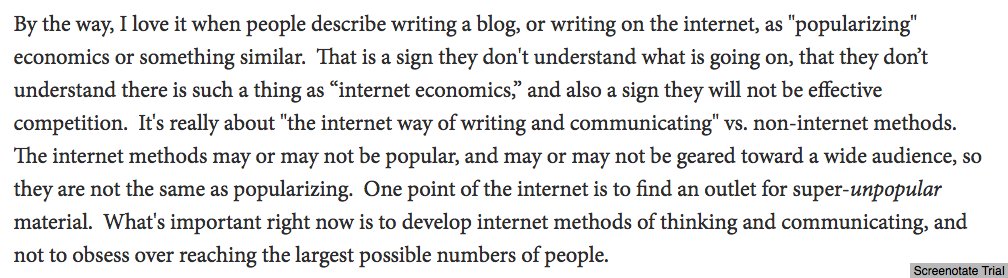 . @tylercowen on his personal intellectual moat, interesting throughout: https://www.mercatus.org/commentary/my-personal-moonshot …pic.twitter.com/A93e07QC2Q
