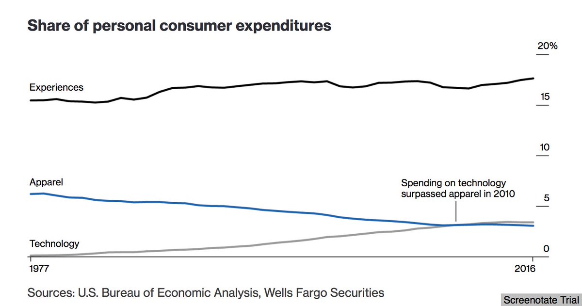 Large reduction in spending on clothing: https://www.bloomberg.com/graphics/2018-death-of-clothing/?cmpid=socialflow-twitter-businessweek&utm_content=businessweek&utm_campaign=socialflow-organic&utm_source=twitter&utm_medium=social … via @TheStalwart @nayafiapic.twitter.com/AtzxQwfmlK