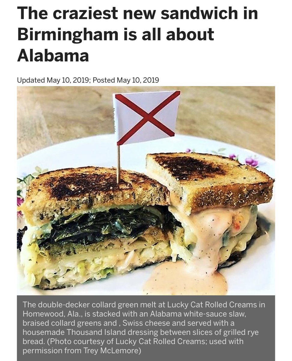 Blasphemy comes in many forms and today it shows itself as a double-decker collard green melt from a restaurant in Alabama: https://trib.al/3utPvCh pic.twitter.com/5A6ENmwAh1