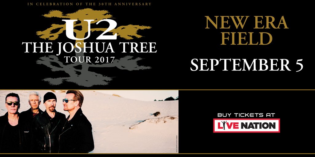 THIS JUST IN: U2 is playing New Era Field on September 5, 2017! Tickets go on sale next Monday: http://livemu.sc/2qRhxg8 pic.twitter.com/Oh40AOiA6W