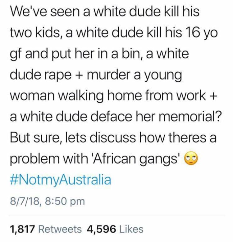 Nah he deserves to be questioned about it. The whole “African Gangs” thing is a beat up by the LNP and this show exactly how fake it is