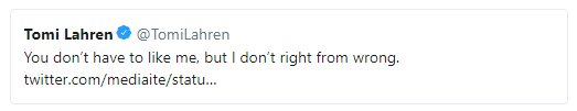 I also don't right from wrong. https://twitter.com/TomiLahren/status/1002635419811438592 …