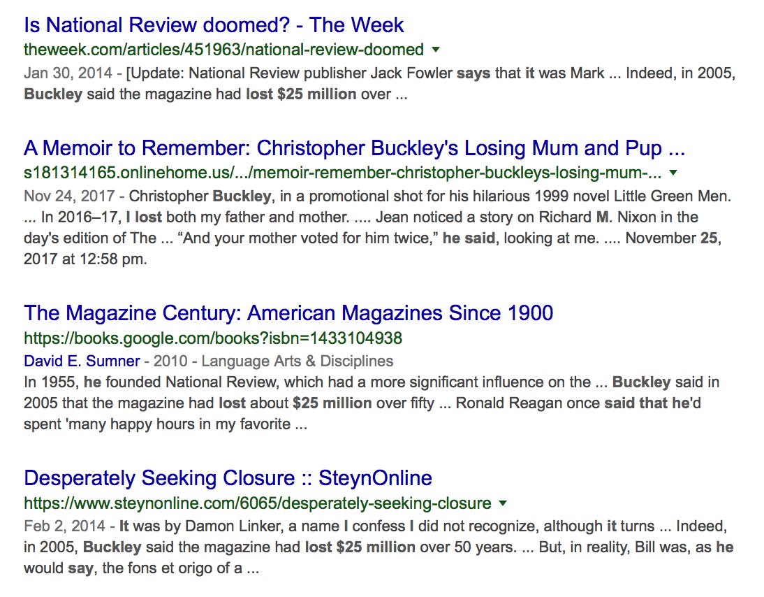 William F Buckley said he lost $25 million in the first 50 years of National Review or $500,000 per year. Who funded him? Can you say Si Aye A?pic.twitter.com/Tc5kU5WHGe