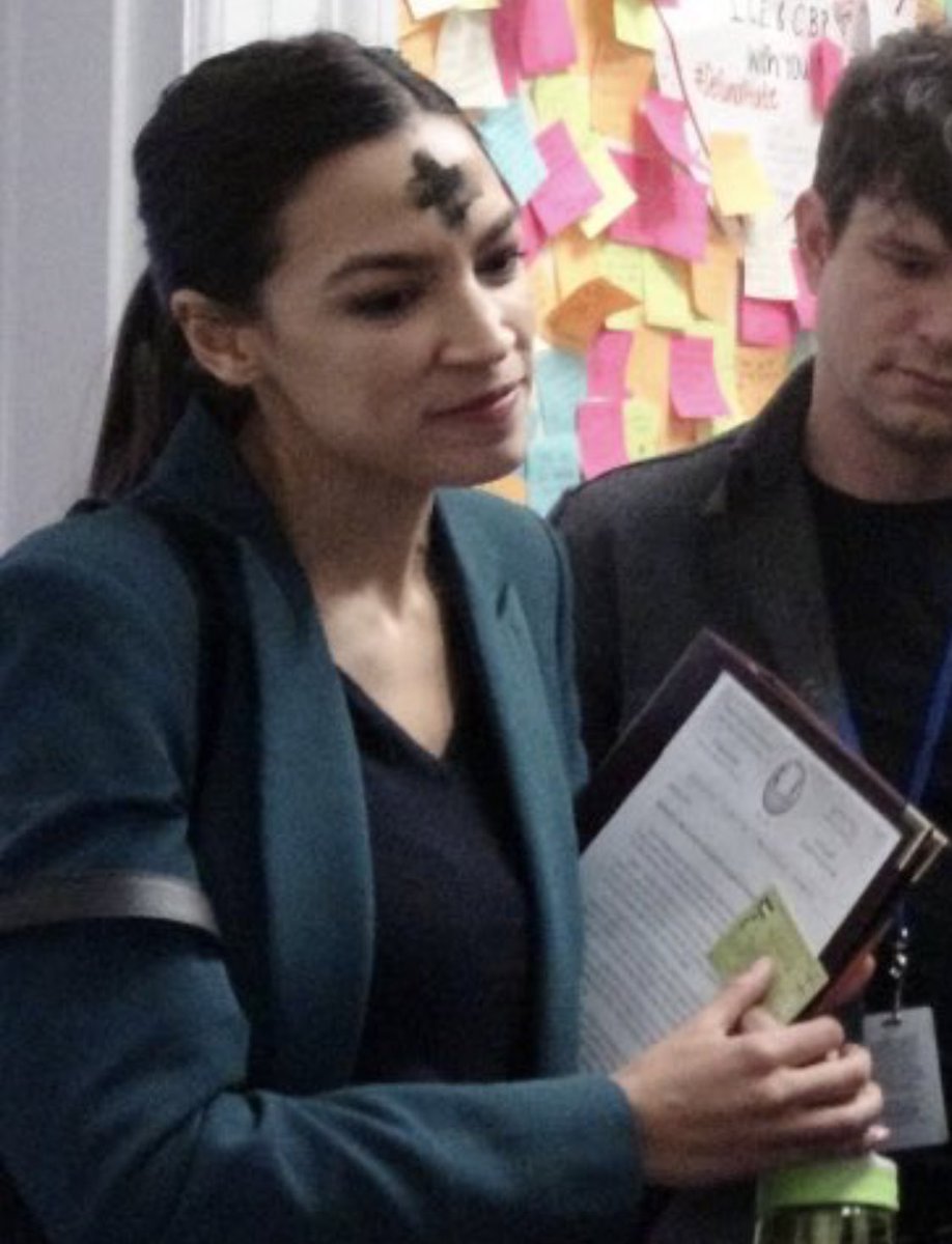 Just last week, @AOC had ashes on her forehead for Ash Wednesday Tonight she attacked those who pray pic.twitter.com/wzOnRn7R22