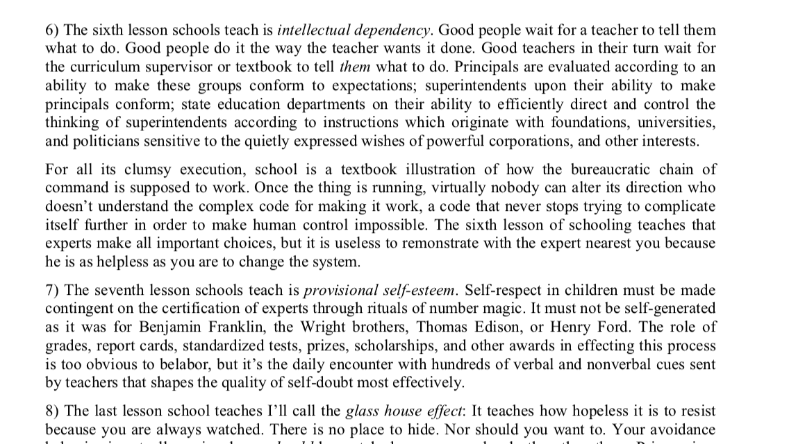 From John Taylor Gatto's excruciatingly unedited "Underground History of American Education" https://twitter.com/acctomichael/status/1183818426407632898 …pic.twitter.com/Bum2OKAX1E