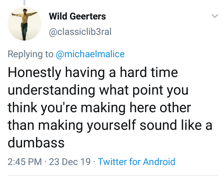 1. Michael Malice‏Verified account @michaelmalice 23 Dec 2019