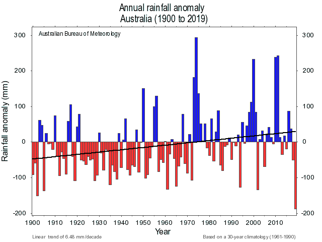 Your graph is for the whole country. If the west had the worst drought on record & the east had the heaviest rain, your graph would show a normal year. In other words it's as useful as a chocolate tea pot. Here's some better info from the scientists. http://climatecollege.unimelb.edu.au/recent-australian-droughts-may-be-worst-800-years …