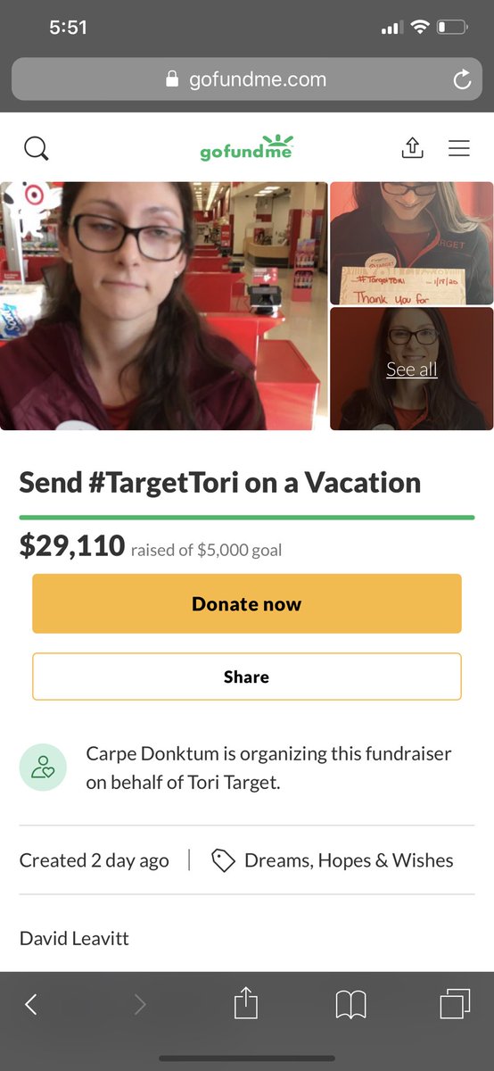 The brilliance of this story is that it is only marginally about #TargetTori . It is mostly a $30k slap in the face to the mainstream media, and specifically @oneunderscore__ . It’s commentary. https://www.gofundme.com/f/help-tori-take-a-vacation-from-target …pic.twitter.com/7I7PgQVK93