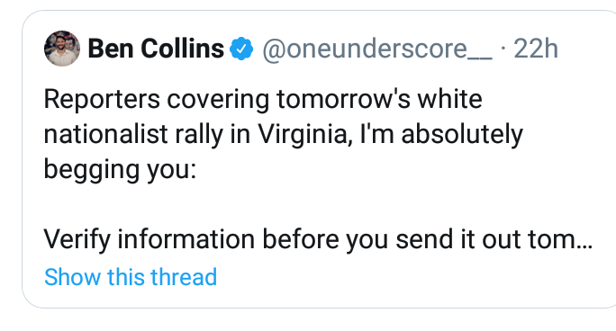 "white nationalist rally" they write the story first and then hopes for (anecdotal) evidence to "prove" that it is true Bias: When the reporting is primary and narrative is secondary Agenda: When the narrative is primary and reporting is secondary https://twitter.com/oneunderscore__/status/1218950265736482816 …