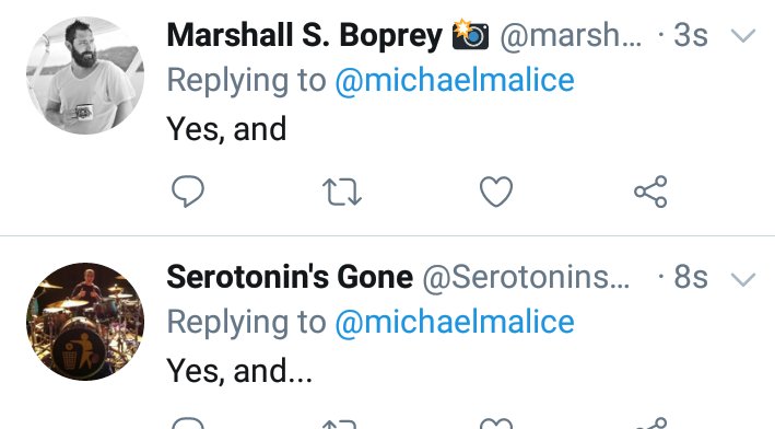 I sometimes forget that many people think Twitter is an improv class, and every tweet is their personal cue to respond with improv-class-level humor