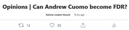 Honestly, how do their brains work? Their thought process has to be like, "Orange Man has bungled this response, do you know who would be better than him at this? The governor whose state is almost entirely in the hospital."