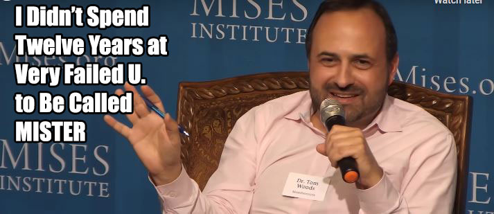 I was under the impression his title was, “The Great Tom Woods,” or “The Very Failed Podcaster Tom Woods.”