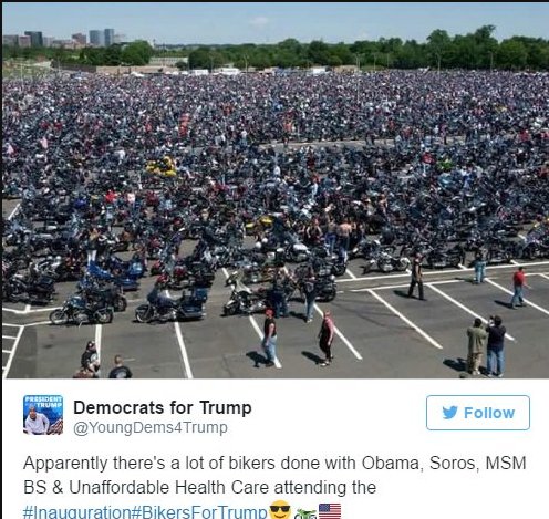 Trump bragged about incredible photos of bikers coming to his inauguration. The photos are fake. https://goo.gl/4pln03  pic.twitter.com/q1c17jwngl