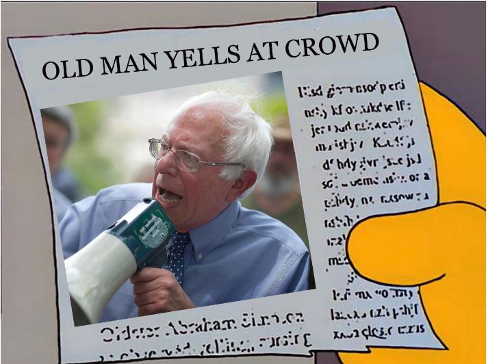 Old man Bernie Sanders yelling at crowd Arrested for disturbing the peace, the perfect headline