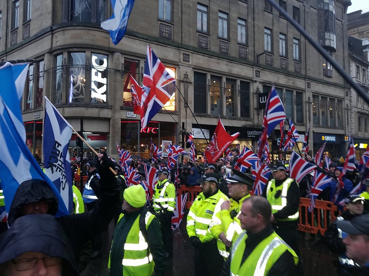 About 50 to 75 counter-demonstrators met today's Scottish independence march in