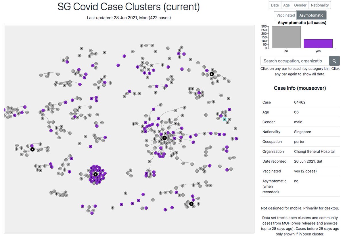 The source (http://Covid.viz.Sg ) is compiled with the data the Singapore Govt releases daily about every case. The contact tracing here is extremely detailed and it includes date the person received their vaccination (Pfizer or Moderna).