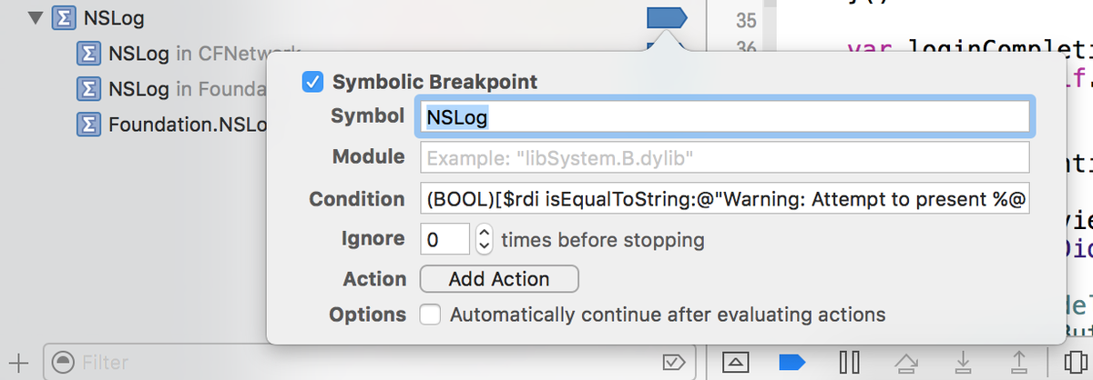 Break on “Attempt to present VC1 on VC2 whose view is not in the window hierarchy!” http://try.zats.io/breakpoints-for-uiviewcontroller-presentation-warnings/ …pic.twitter.com/bY72vXoSHT