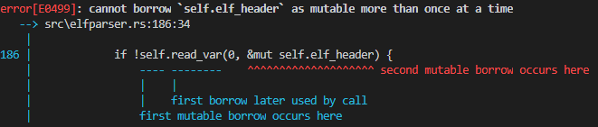 pub fn read_var<T>(&self, offset: u64, var: &mut T) => if `var` is a member of `self`, you can't borrow `var` mutably because you borrowed `self` immutably => if you borrow `self` mutably, you can't borrow `var` mutably, because you are now borrowing twice Thanks, I hate itpic.twitter.com/uWr2tIoAZd