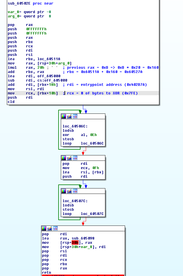 Here is a x64 sample of Tsunami that first XORs 2046 bytes from EP and then returns to it. It has 3 (unusual) LOAD segments, first one is RWX (unusual) and the 3rd one is not in sequence with the other 2 (unusual). Not the first sample like this. https://www.virustotal.com/gui/file/bd4b814a97d838d12a9e9f6e9764acecf9c02a651292393b59c4b3e43e1e952c/detection …pic.twitter.com/EgGVYmEpUt