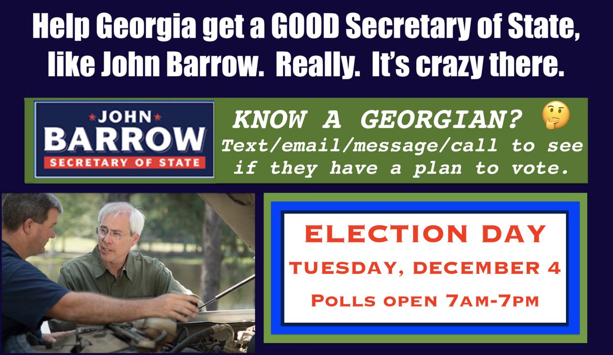 #Georgia needs a complete overhaul of how they engage voters with elections. Vote (D) @Barrow4Georgia Meet John https://www.barrowforgeorgia.com/ Volunteer/donate https://www.flipgeorgiablue.com/