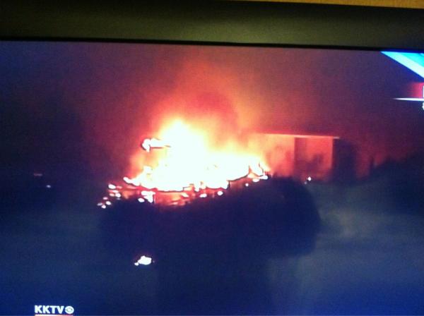 This is the live pic of burning homes on KKTV right now 10:11pm Mountain time #waldocanyonfirepic.twitter.com/4RbG8Mga