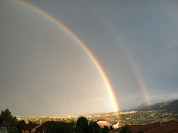 Dbl rainbow even brighter now! Thinking of all our friends/neighbors who've suffered so much. #waldocanyonfire =>pic.twitter.com/O051XjU0