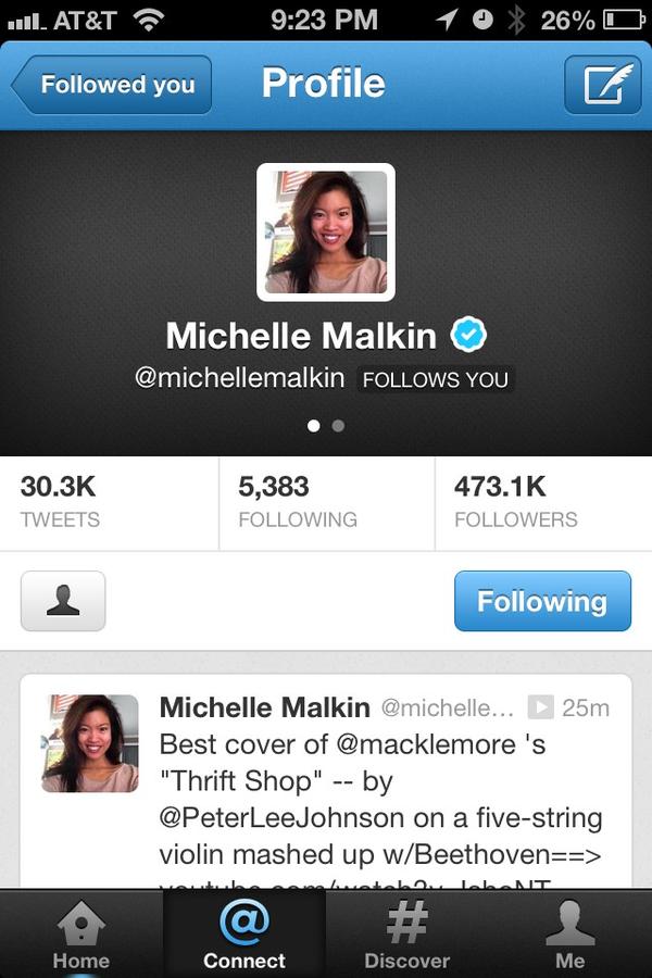 WHAAAT?!? My personal hero @michellemalkin just followed ME!!
