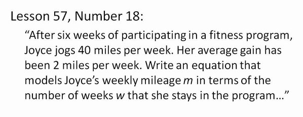 @michellemalkin@hmhco If "Joyce jogs 40 miles per week", how can she have an average gain of 2 miles per week?Thanks. Twitter will use this to make your timeline better. UndoUndo