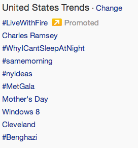 @michellemalkin#Benghazi moved up. Trending in # 4 position now (an hour later)#tcotThanks. Twitter will use this to make your timeline better. UndoUndo