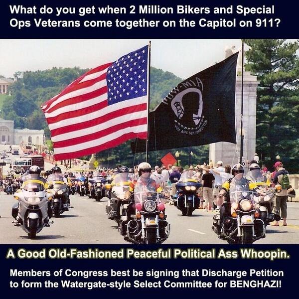 @michellemalkin Spec Ops Vets have just joined up with 2 Million Bikers for Benghazi Rally @ Capitol 9-11-13!pic.twitter.com/2Hd0Il0lVg