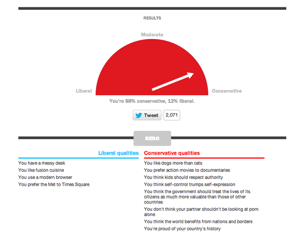 @michellemalkin I'm 18% liberal because I like the Met, fusion cuisine, and use Firefox? -