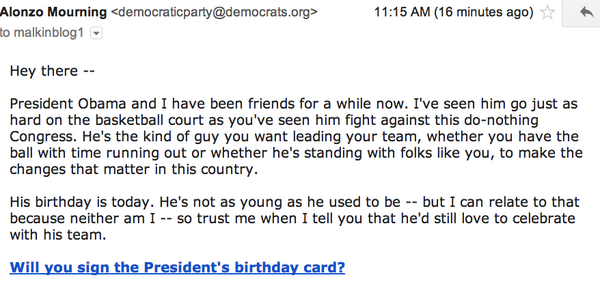Seriously: Alonzo Mourning money-grubbing for Obama & pestering ppl to sign his birthday card==>pic.twitter.com/7aHa0ibrNS