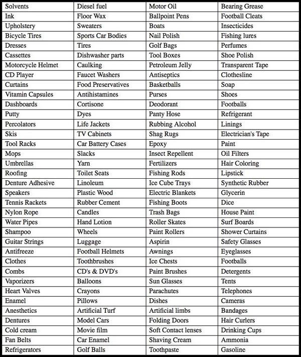 @michellemalkin These are some products made from oil, no doubt these Hypocrites use them all.pic.twitter.com/mhZiQjnlvr