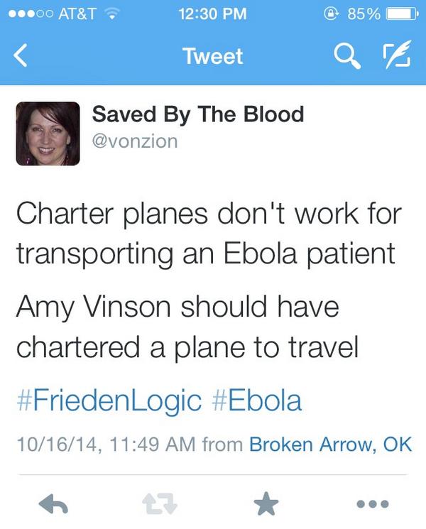 @michellemalkin so if you put on protective gear while treating the infected you can fly how ever you like lolThanks. Twitter will use this to make your timeline better. UndoUndo