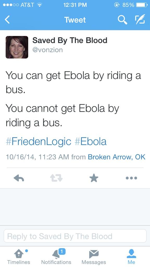 @michellemalkin A trained nurse knowingly exposed to Ebola has to ask if she should travel (and knows she has a fever) She scares me more!Thanks. Twitter will use this to make your timeline better. UndoUndo
