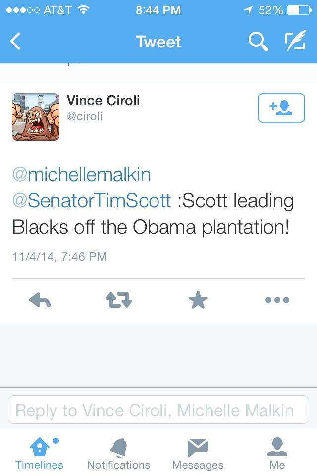@michellemalkin: Congratulations@SenatorTimScott - Defending liberty & life..and making history! ==> http://www.wcnc.com/story/news/politics/elections/2014/11/04/tim-scott-wins-election-for-us-senate-in-sc/18491133/ …”Thanks. Twitter will use this to make your timeline better. UndoUndo