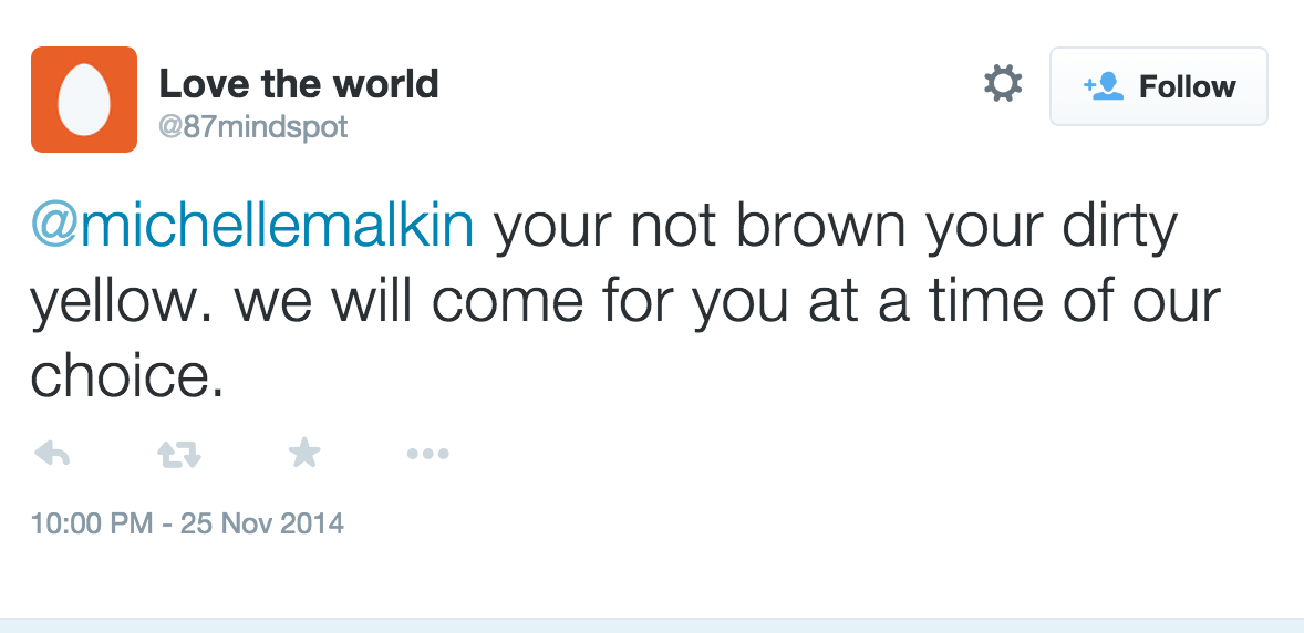 @michellemalkin why this? what you said or did?Thanks. Twitter will use this to make your timeline better. UndoUndo