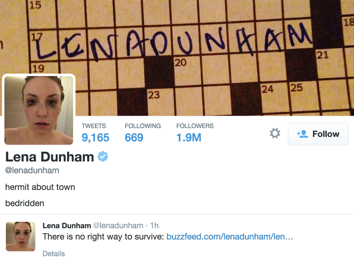 @michellemalkin@lenadunham Is there anyone anywhere that does not believe this girl needs an intervention?!? - 1 more reply