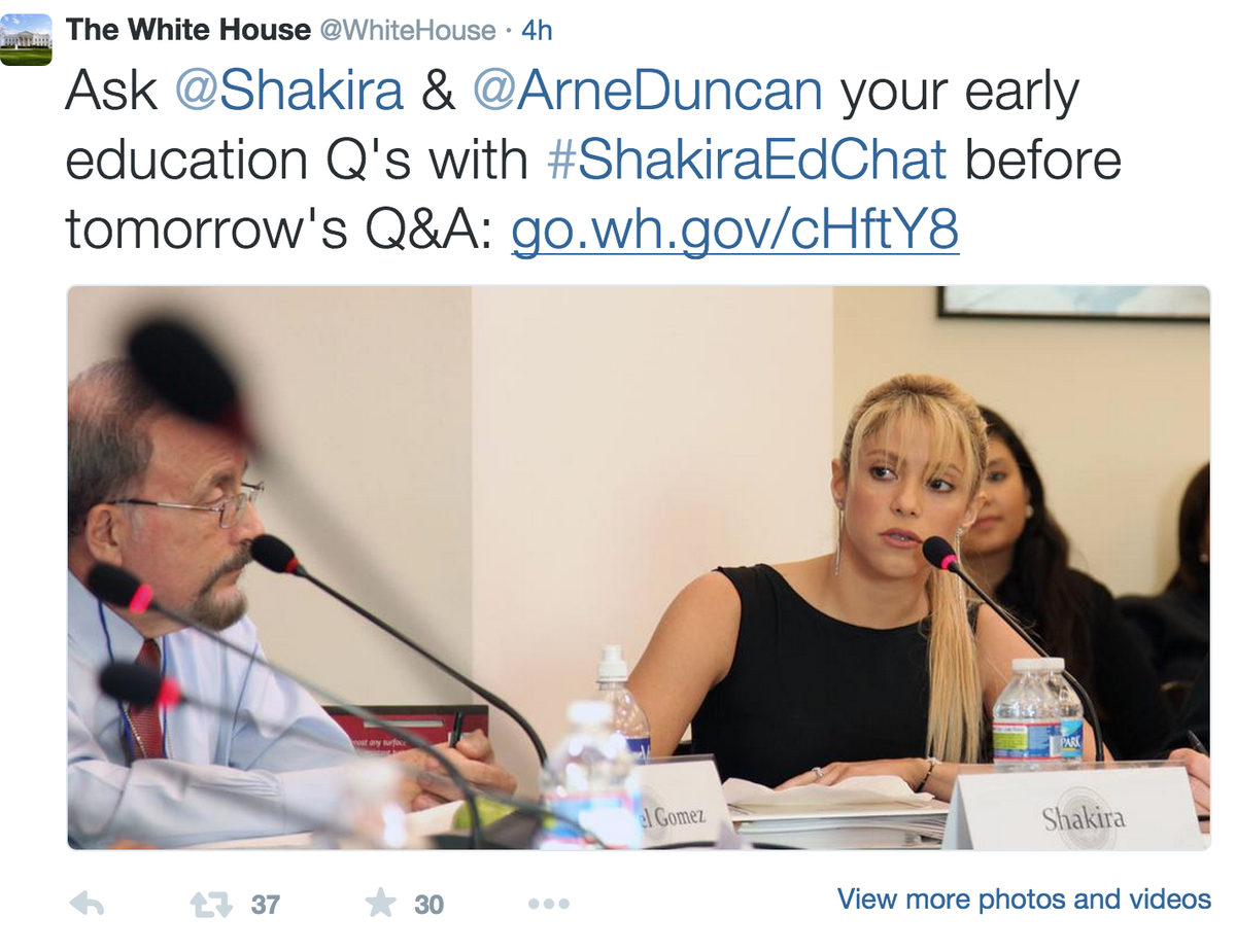 @jeanniology@shakira@WhiteHouse No, I'm talking about the#shakiraedchat happening tomorrow along with the Early Childhood Summit. -