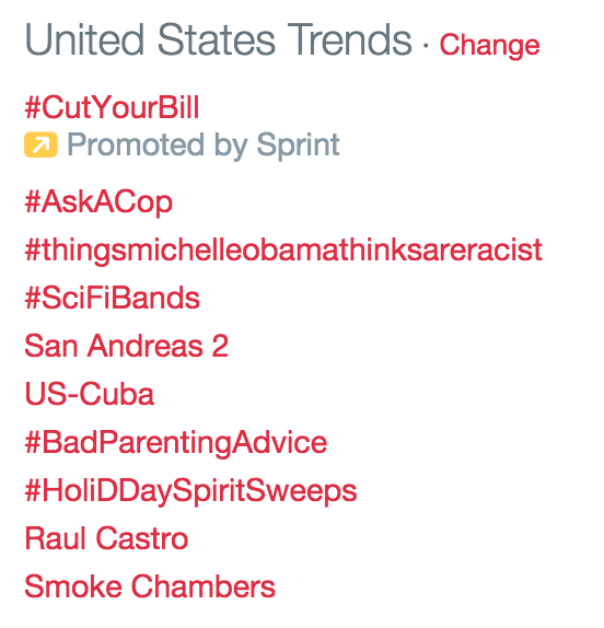 @michellemalkin:#thingsmichelleobamathinksareracist The hashtag is trending #2 in the U.S. Super-RAAAAACIST! pic.twitter.com/Thfn5rnv5A”