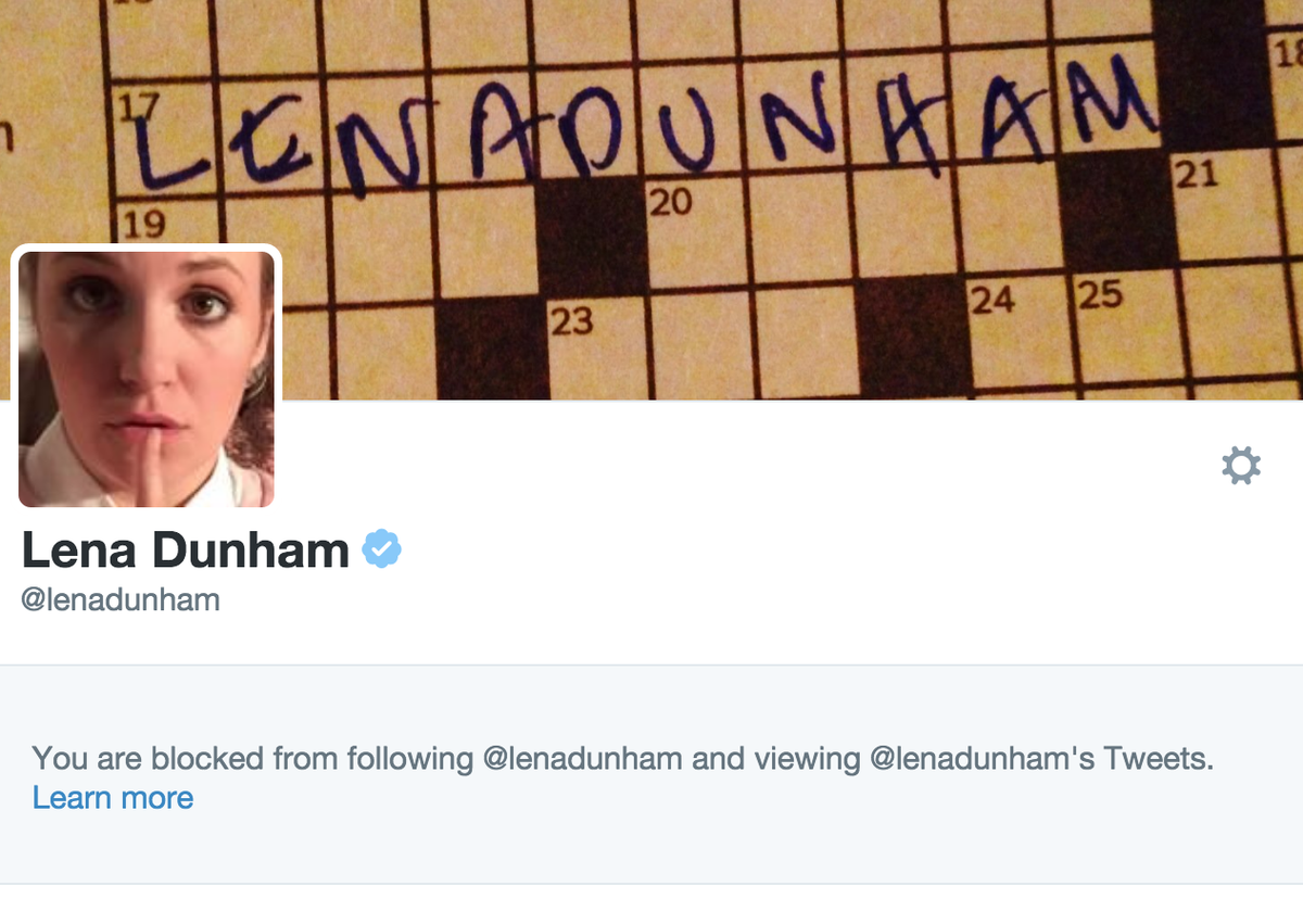 .@michellemalkin I also blocked by @lenadunham! I guess she's mad because I'm yet another Republican male who never tried to mate with her.