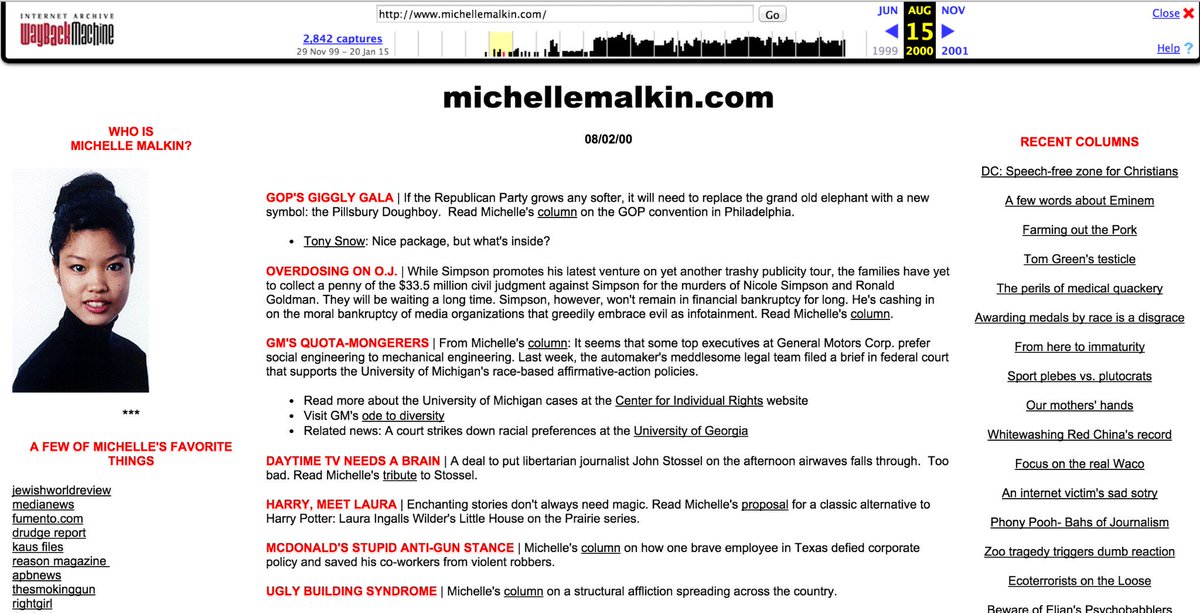 @michellemalkin:#throwbackthursday Via the#WaybackMachine, a snapshot of my 1st website in 2000, 15 yrs ago!==>pic.twitter.com/AOn6qWEAsw