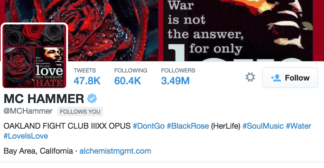 @michellemalkin lol well at least @MCHammer is open minded. 2legit2quit