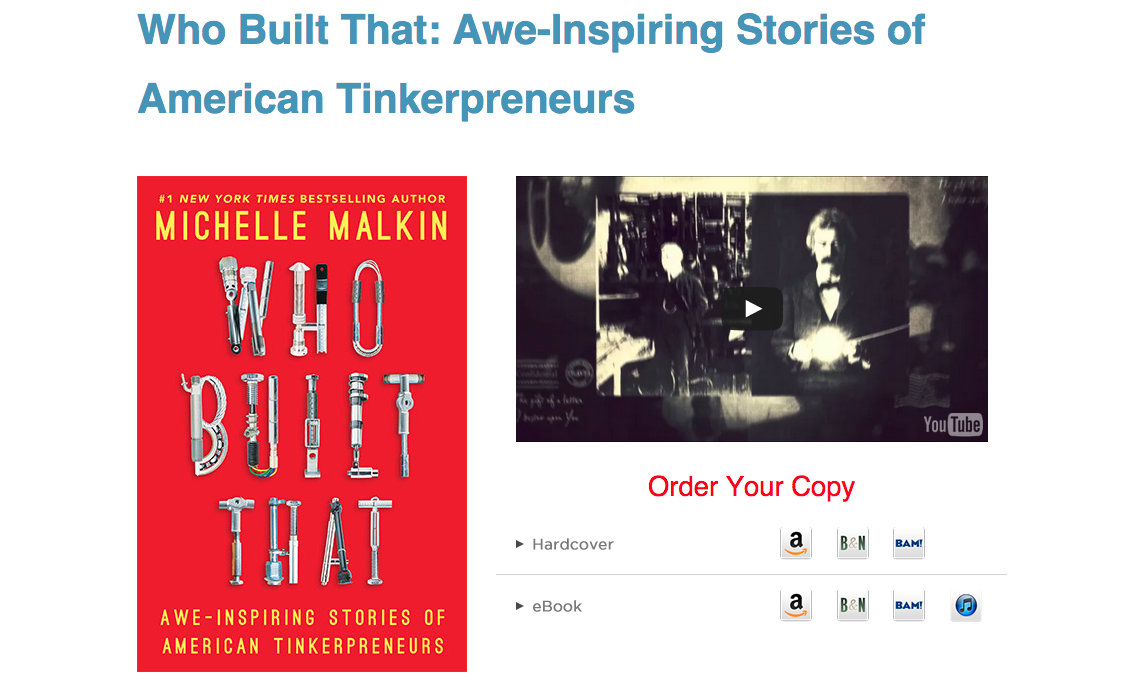 @michellemalkin Heard your interview with @glennbeck yesterday and ordered the book. Love the use of 'Tinkerpreneurs'; right up our alley.