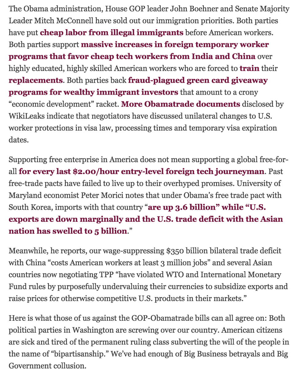 What part of "Stop selling out America?" don't Beltway crapweasels in both parties understand? http://michellemalkin.com/2015/06/12/why-america-hates-the-gop-obamatrade-deal/ …pic.twitter.com/ObWmAlMXwe