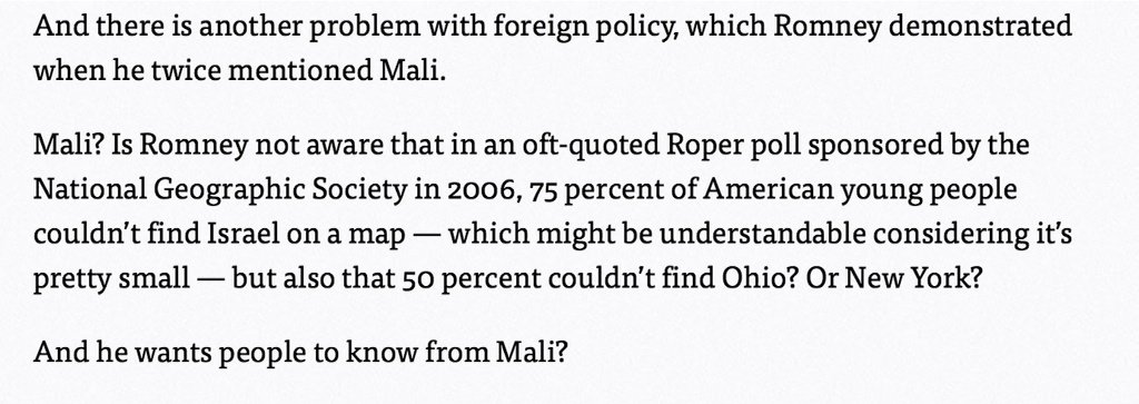 @michellemalkin Once again, 2012 GOP had accurate pulse on foreign policy. Unlike@POTUS.Thanks. Twitter will use this to make your timeline better. UndoUndo
