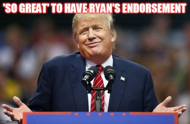 Ryan's aide said it could be called an endorsement, not Ryan! Ryan ran to his Safe Space!